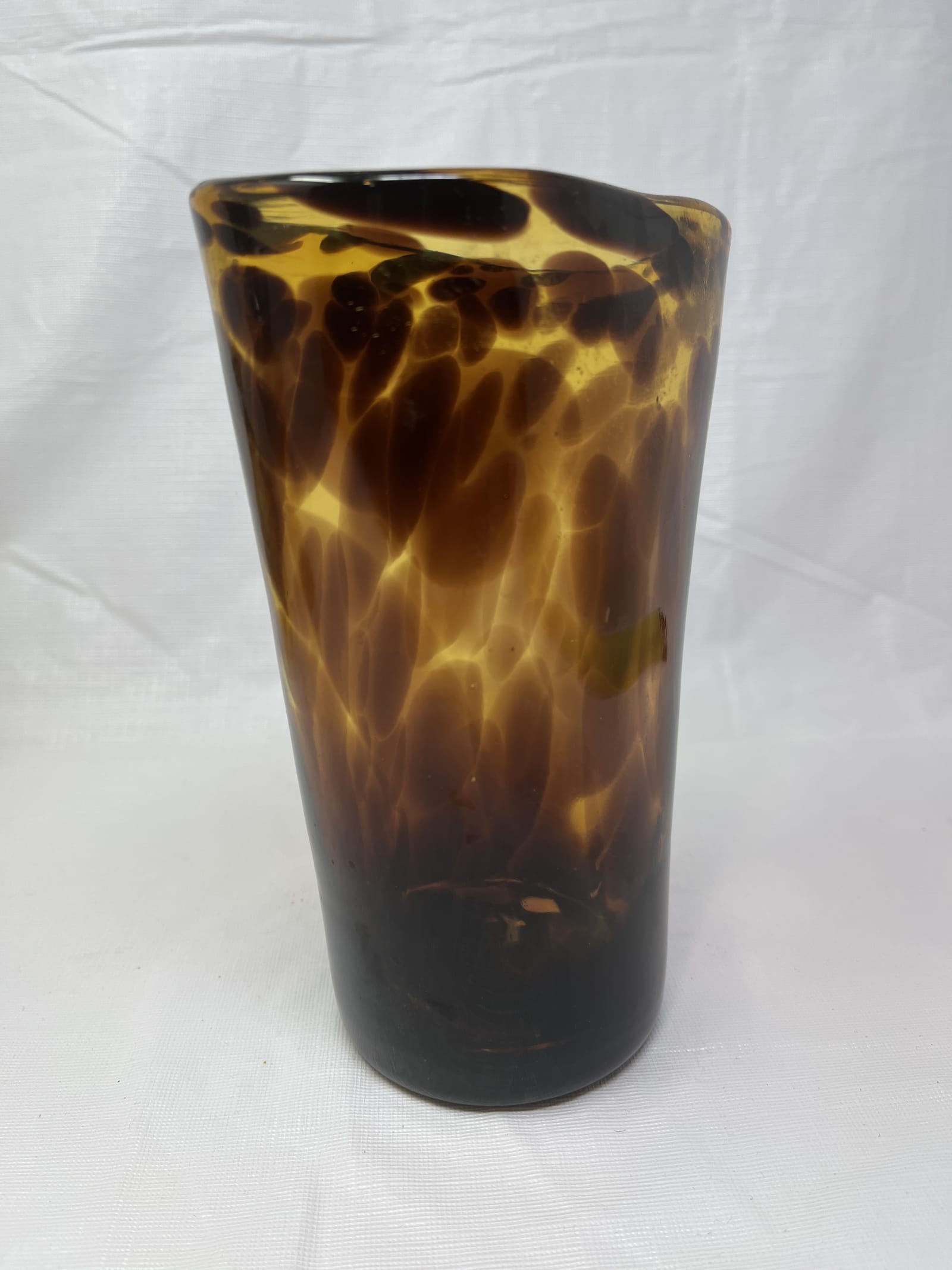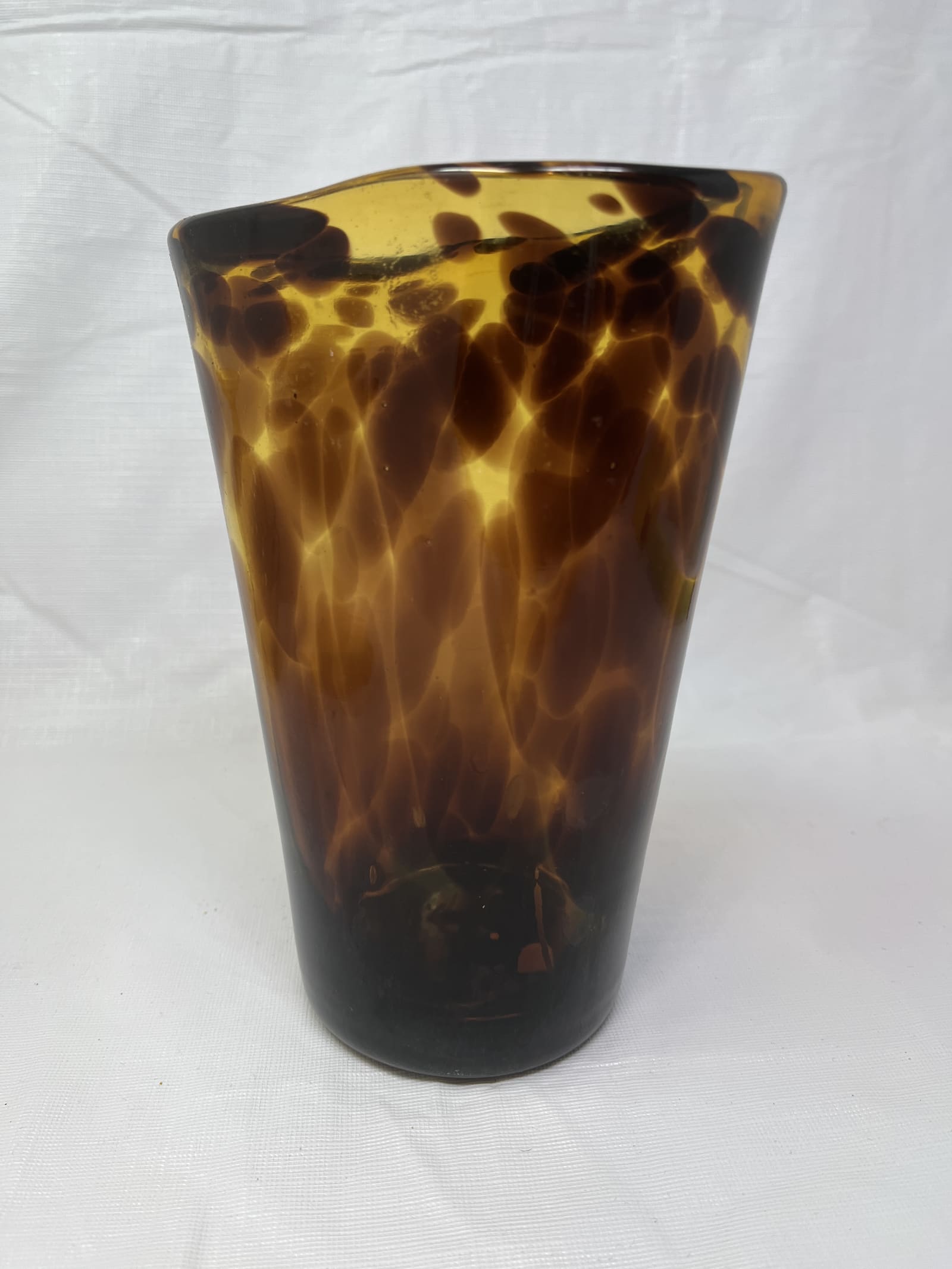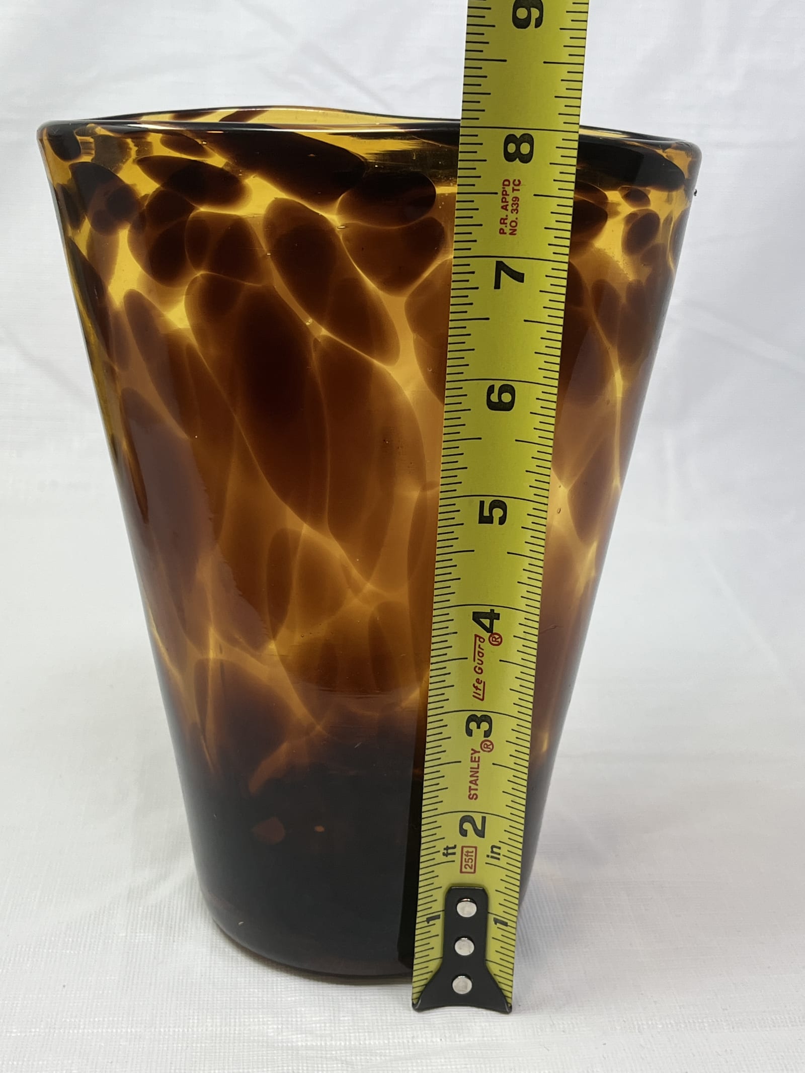 Italian Hand Crafted Tortoiseshell Amber Art Glass Vase 7.5 Inch