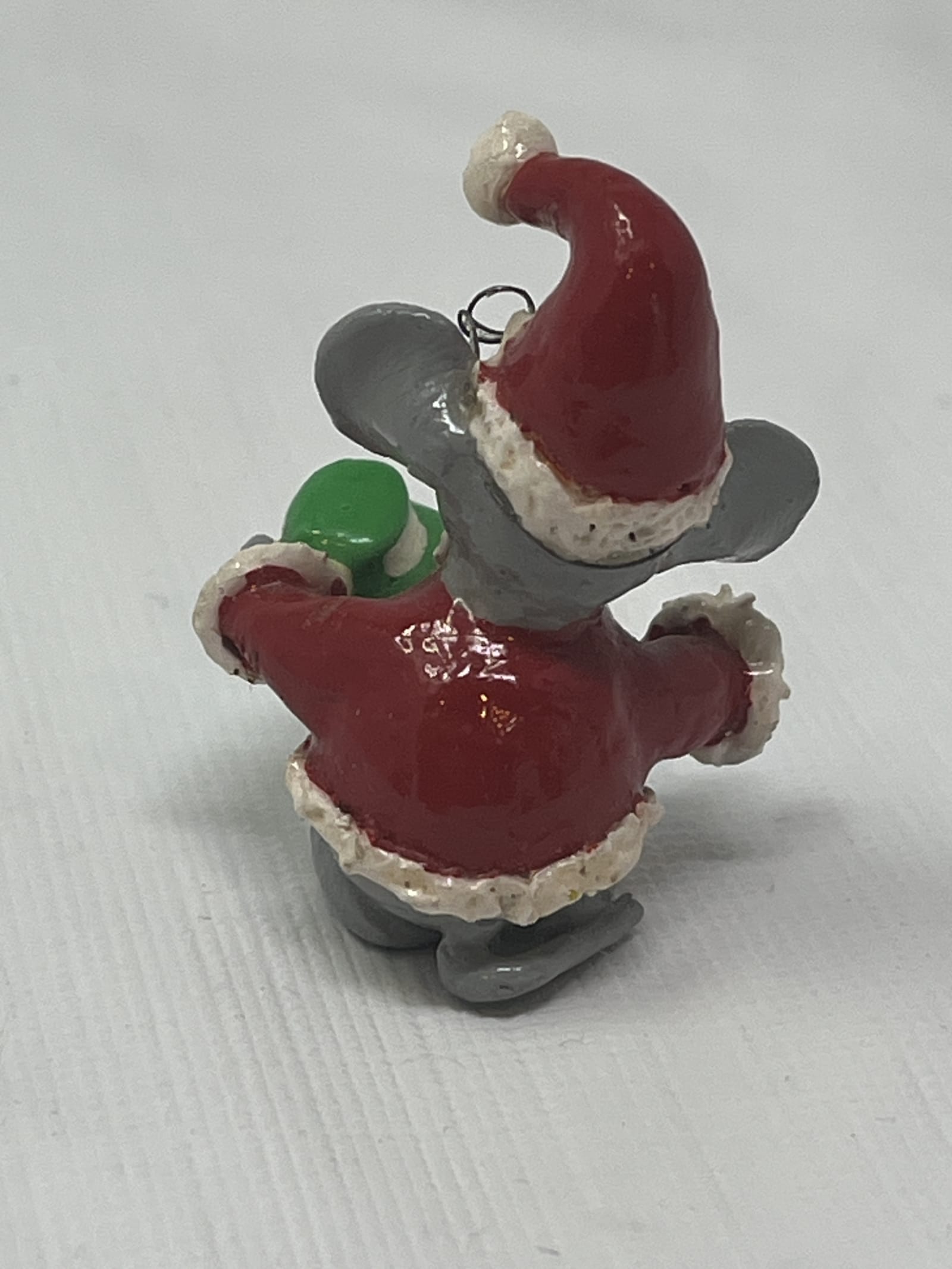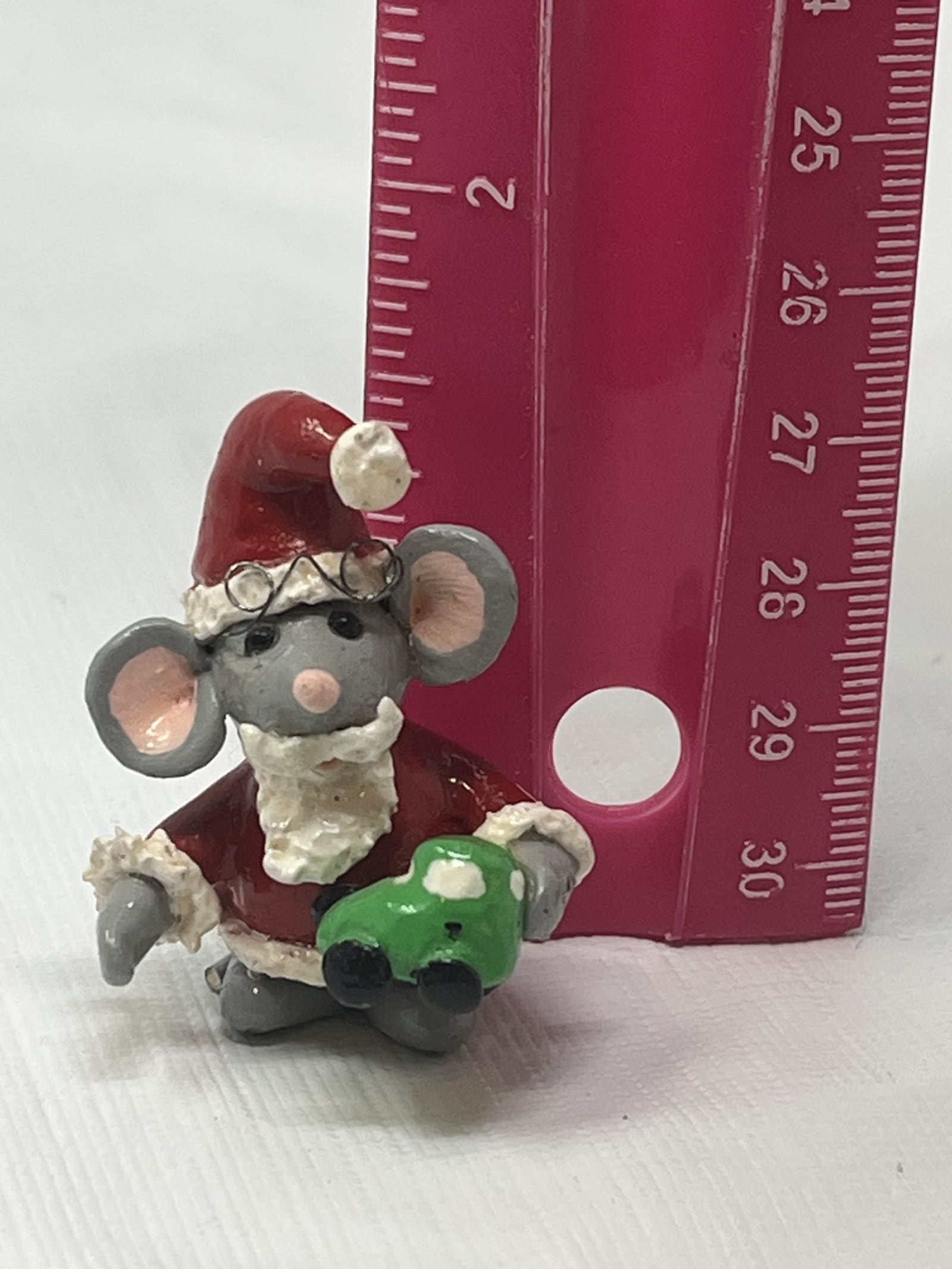 Mini Christmas Mouse Figurine – Santa Hat & Green Gift, 2"