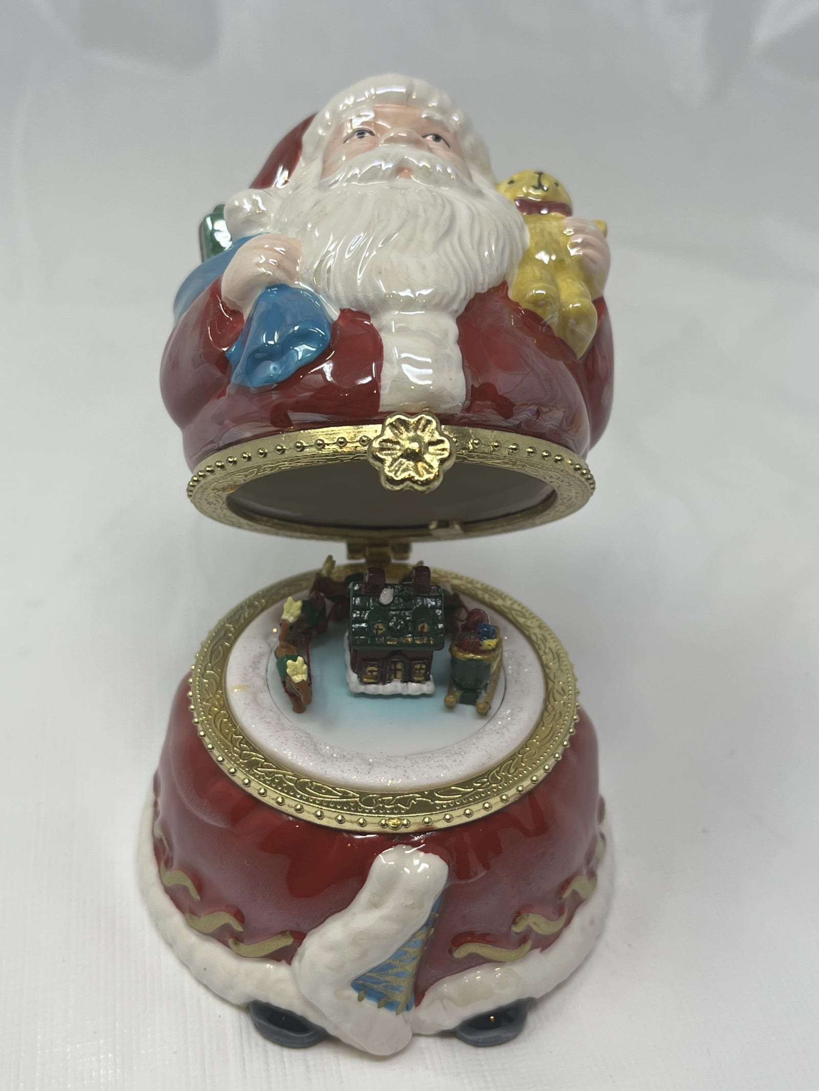 Musical Ceramic Santa Claus Trinket Box – Hinged Holiday Scene, 5"