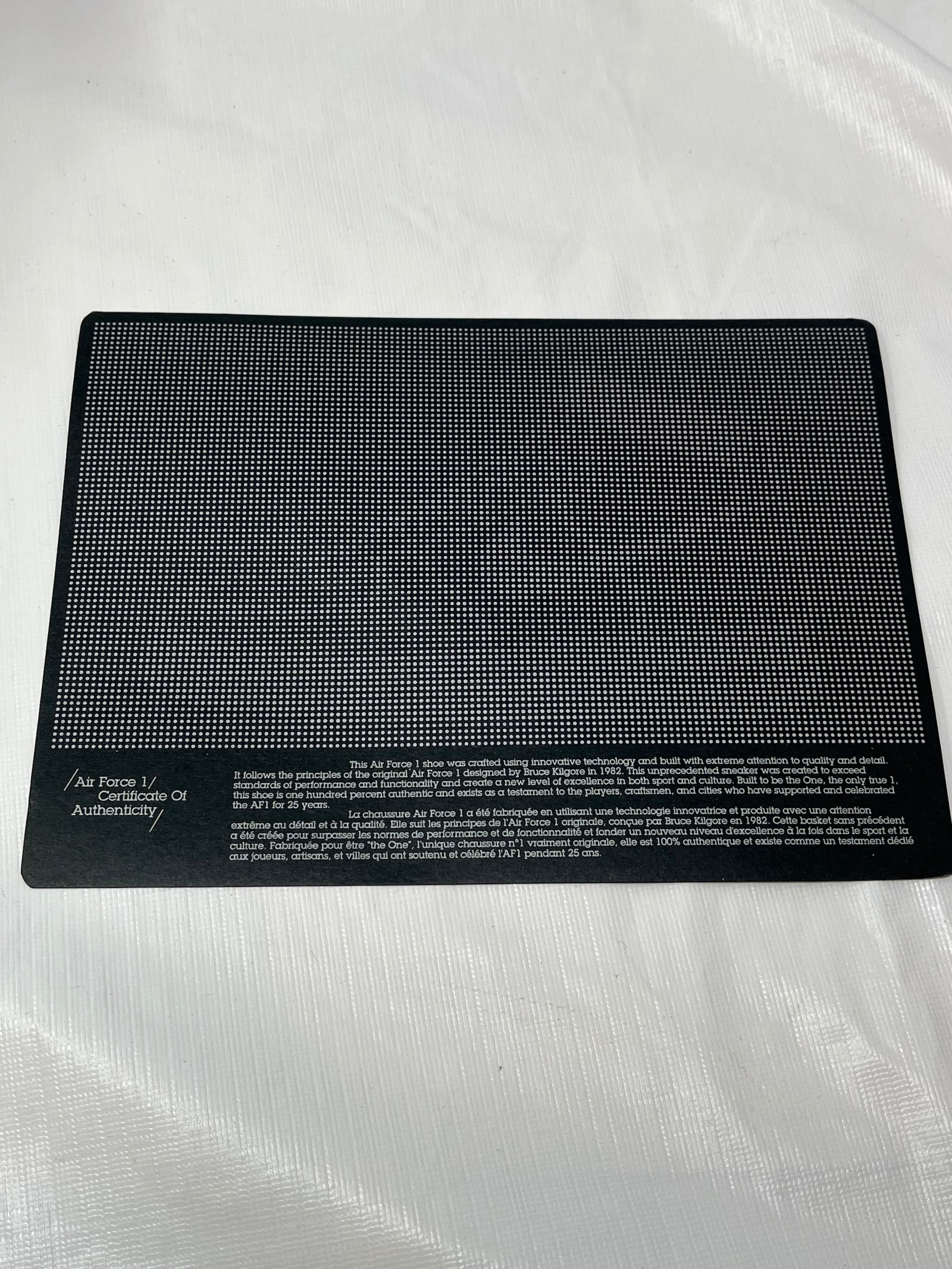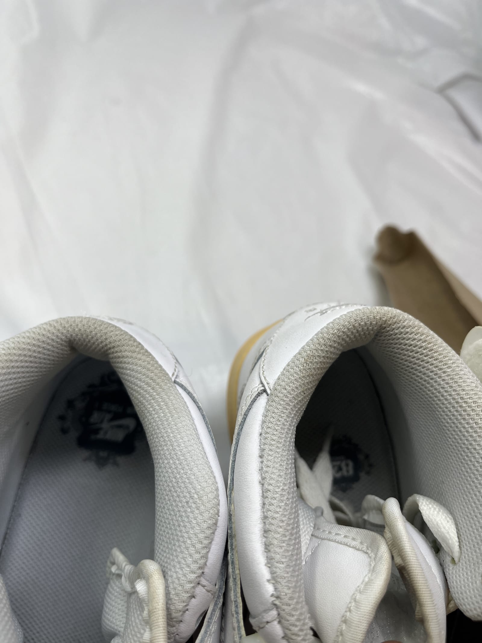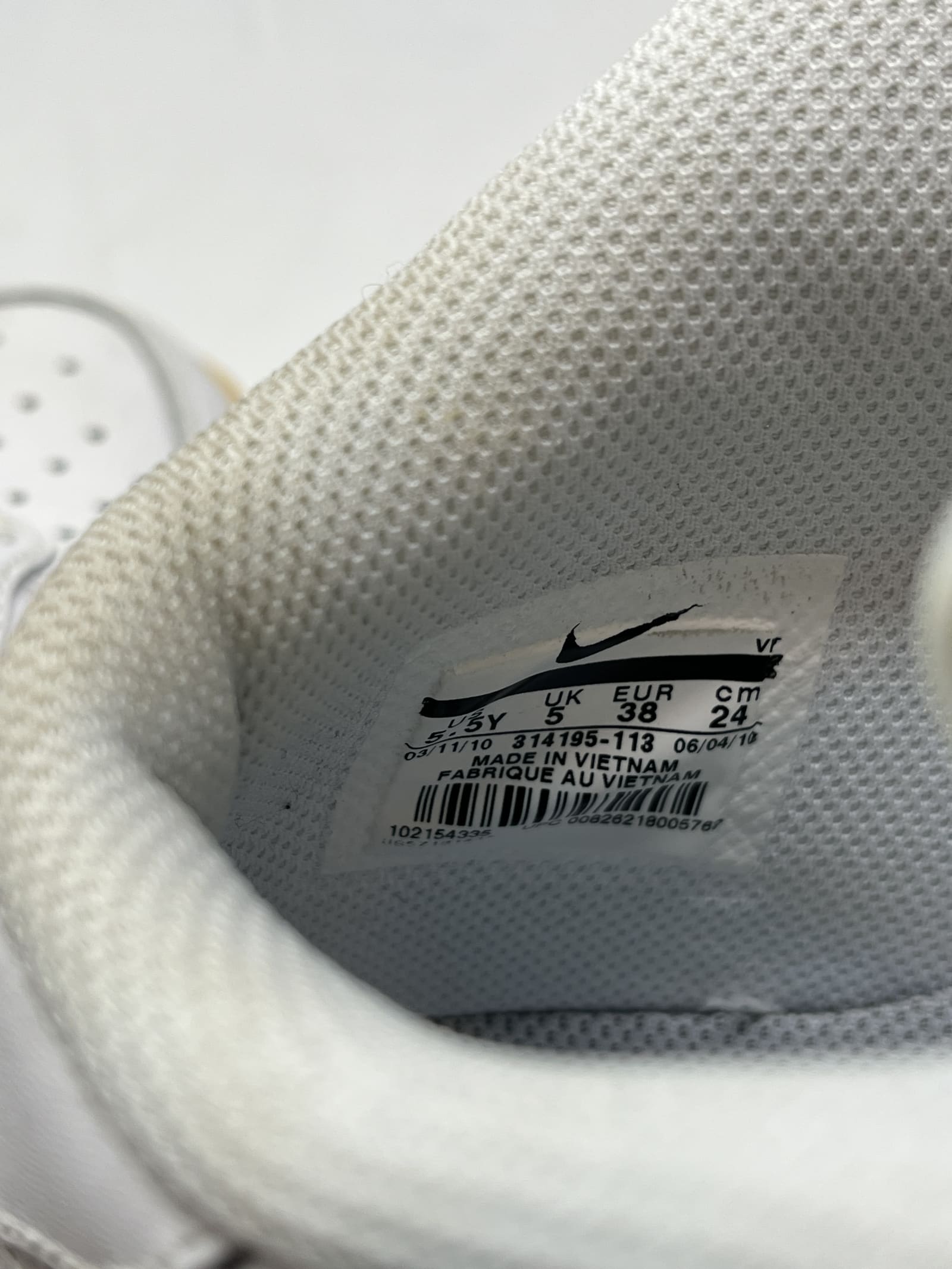 Nike Air Force 1 Mid GS, size 5.5Y. White leather with gum sole. 2010 model, style 314195-113. Box + certificate included. Used, one shoe yellowed sole.