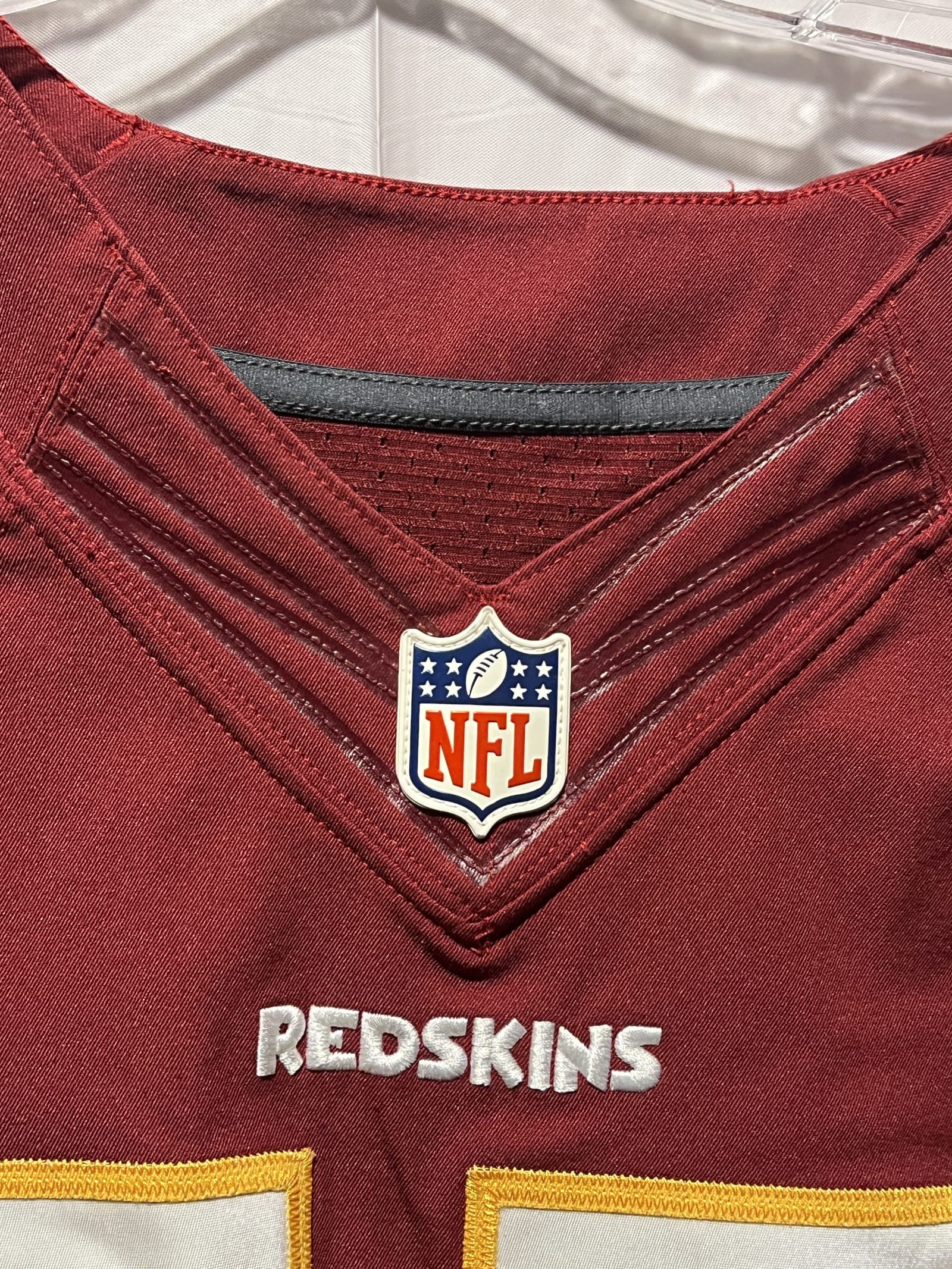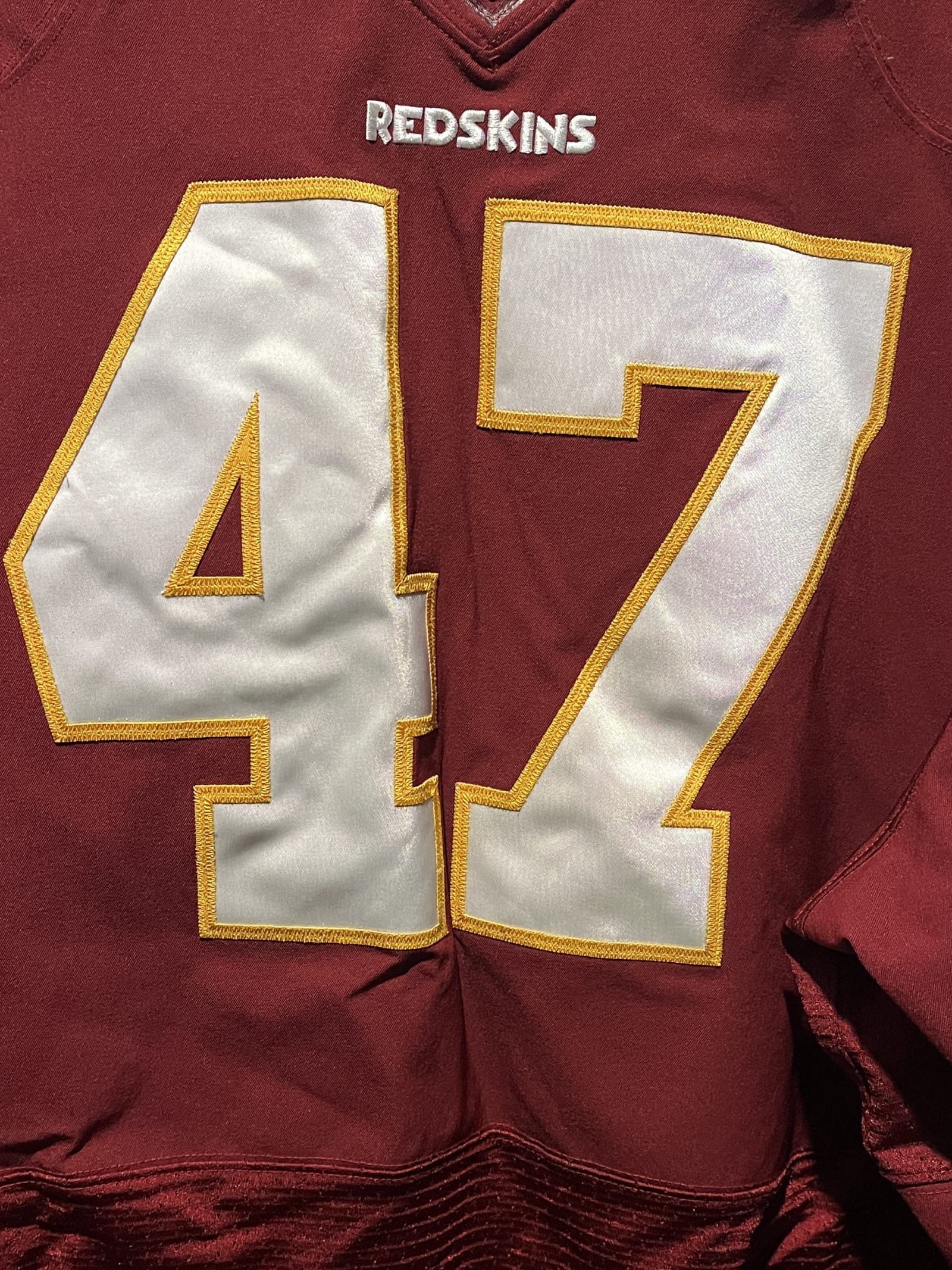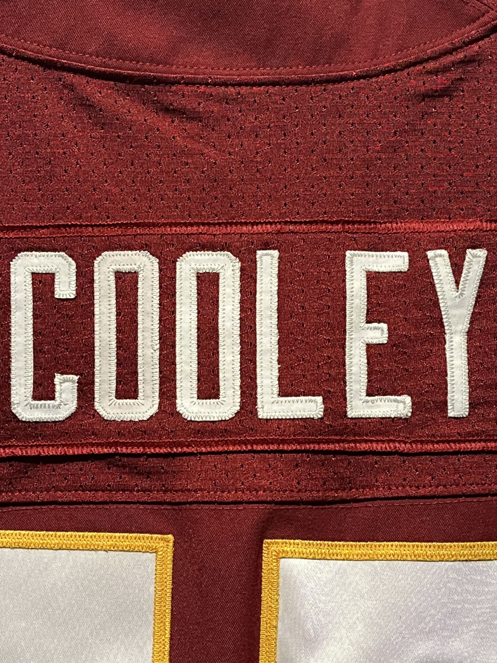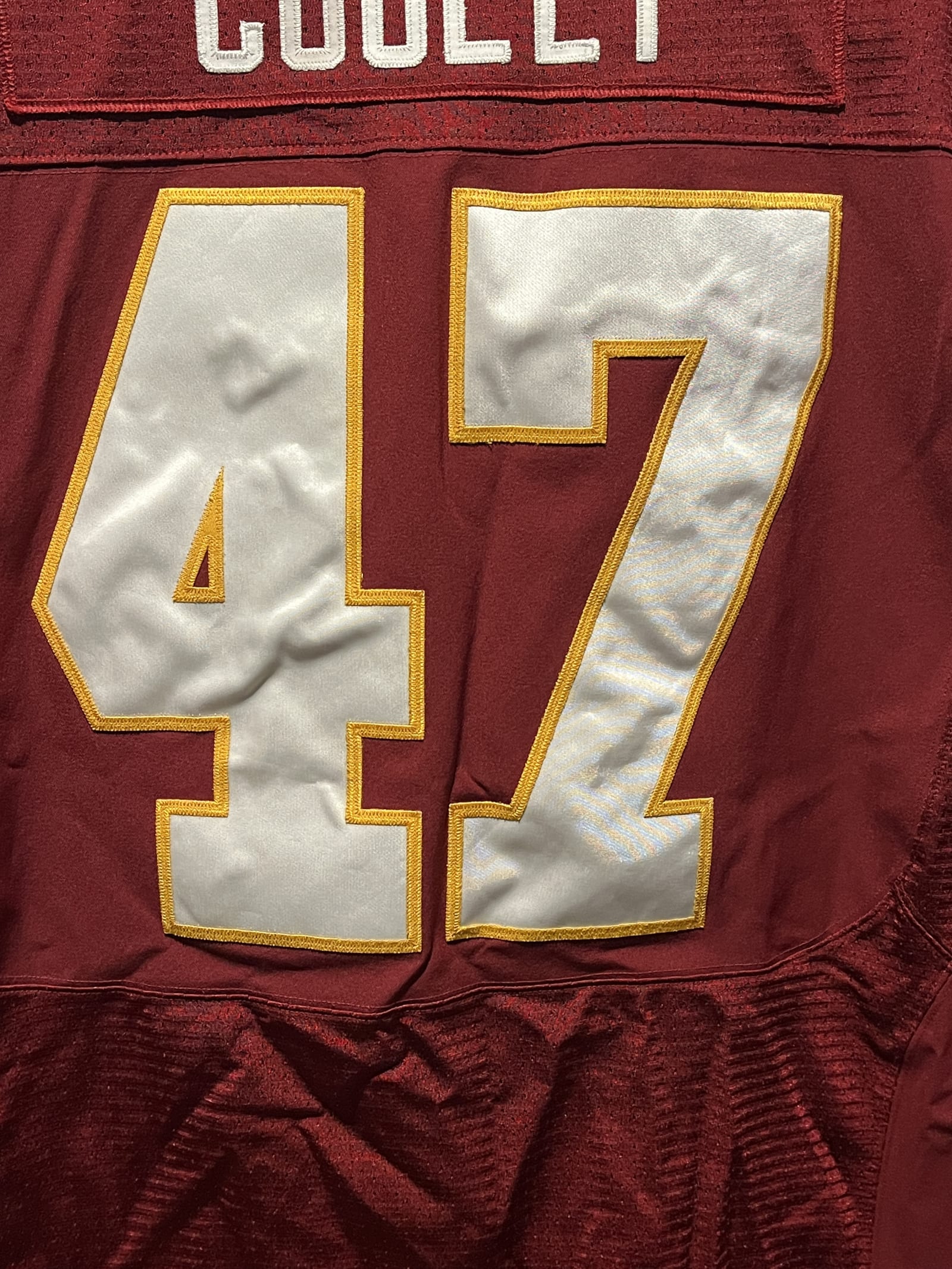 This is an authentic Nike On Field Chris Cooley #47 Washington Redskins jersey in excellent condition. The colors are bright, the stitching is clean, and there are no rips, holes, stains, or peeling. It also has a fresh, clean fragrance from being recently washed — ready to wear right away.