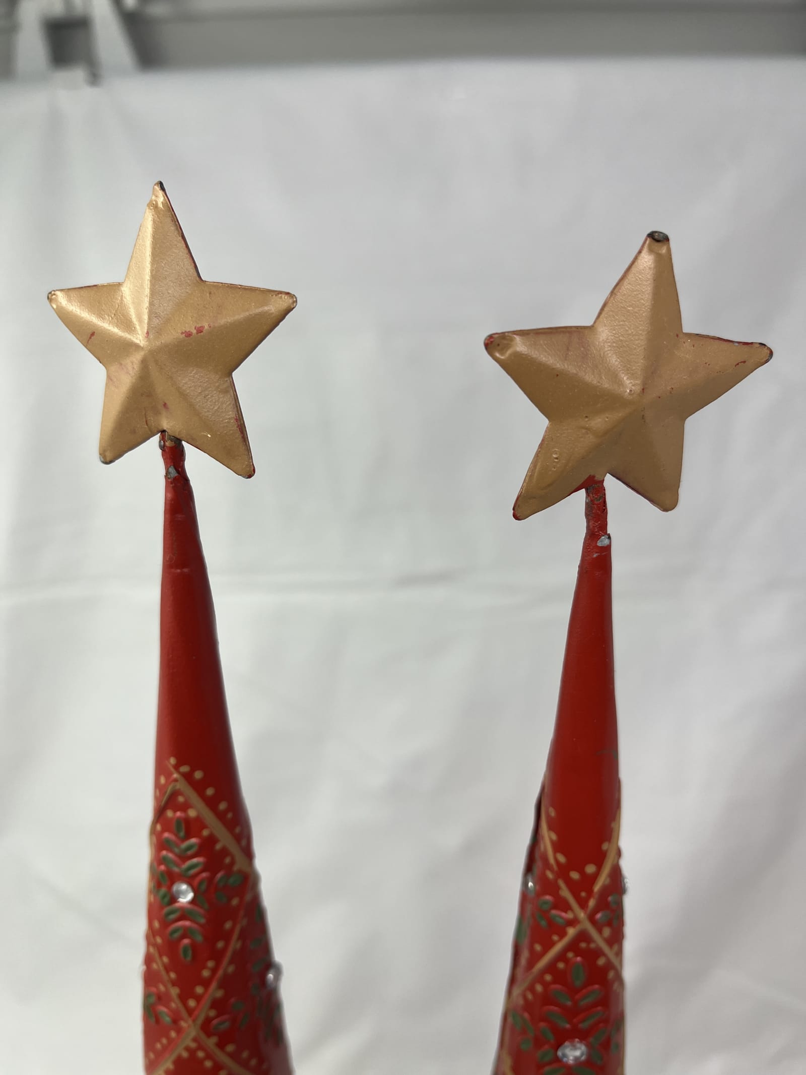 Painted Metal Christmas Tree Rhinestones Gold Star