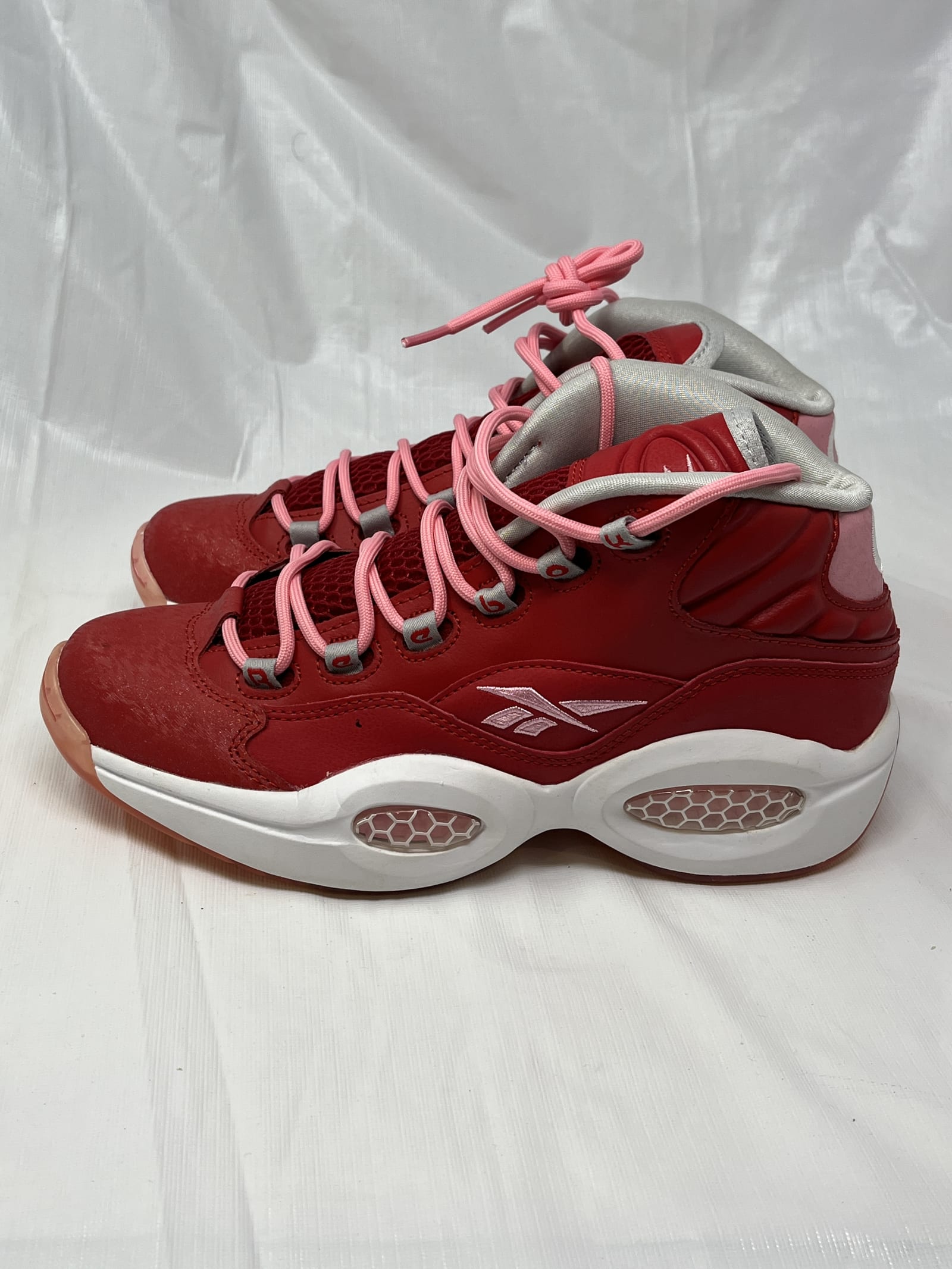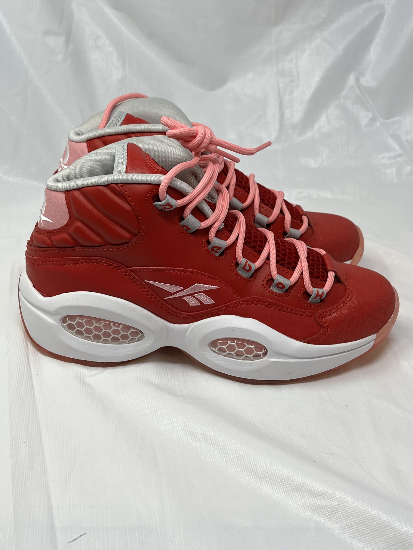 Reebok Question Mid Girls Sneakers – Size 6.5, Scarlet/Light Pink/White