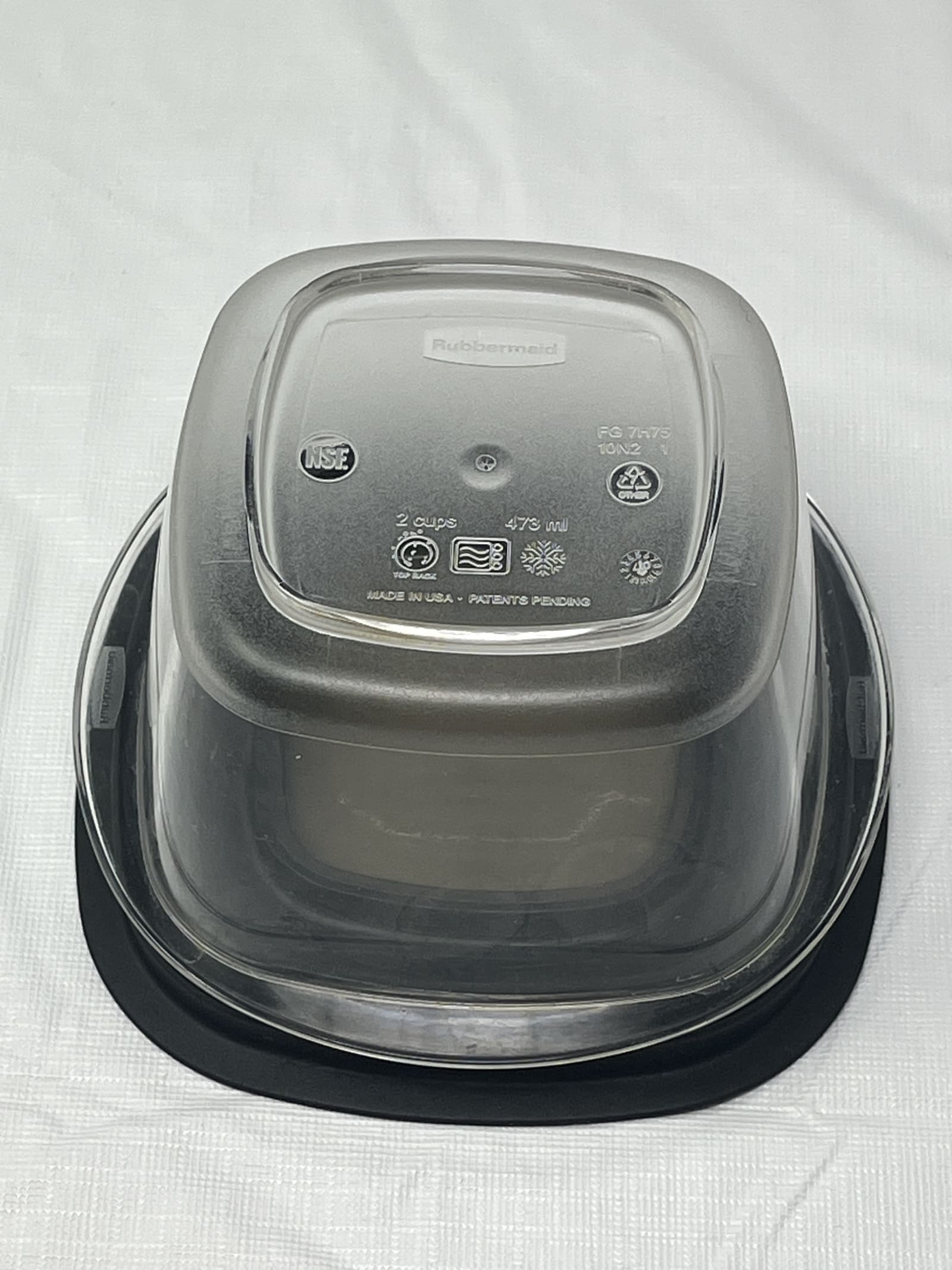 Rubbermaid Premier Storage Square Container 2 Cup Clear w/ Black Lid FG7H75