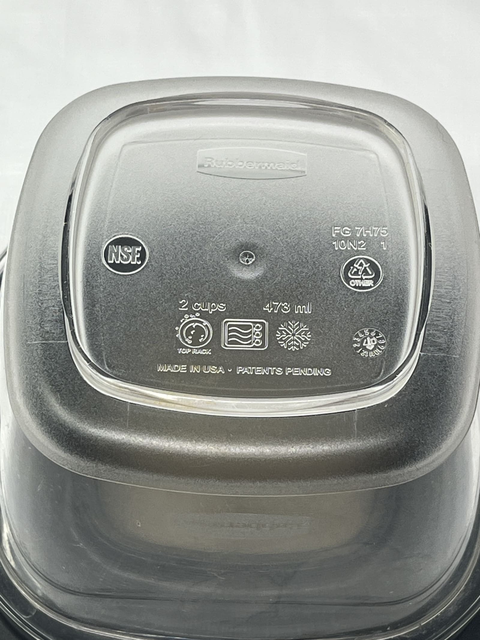 This is a Rubbermaid Premier storage container, model FG7H75. It’s the 2-cup square size, made of clear Tritan™ plastic with a black lid. The Premier line is known for its durability, stain resistance, and tight-sealing lids—perfect for leftovers, meal prep, or pantry storage.