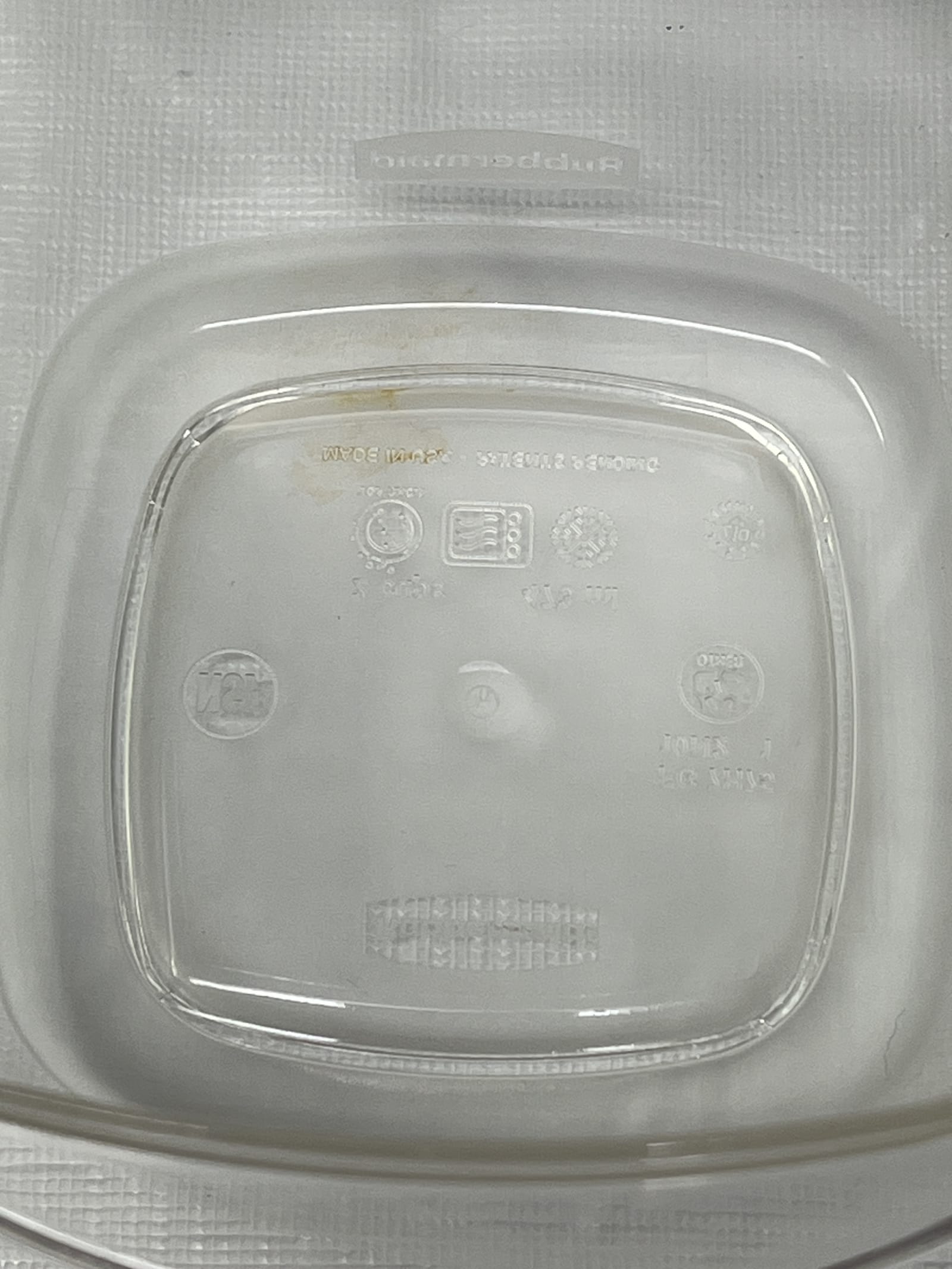 - Condition: Very good — no chips or cracks, lid seals well. Shows light utensil scratches from normal use and needs cleaning.