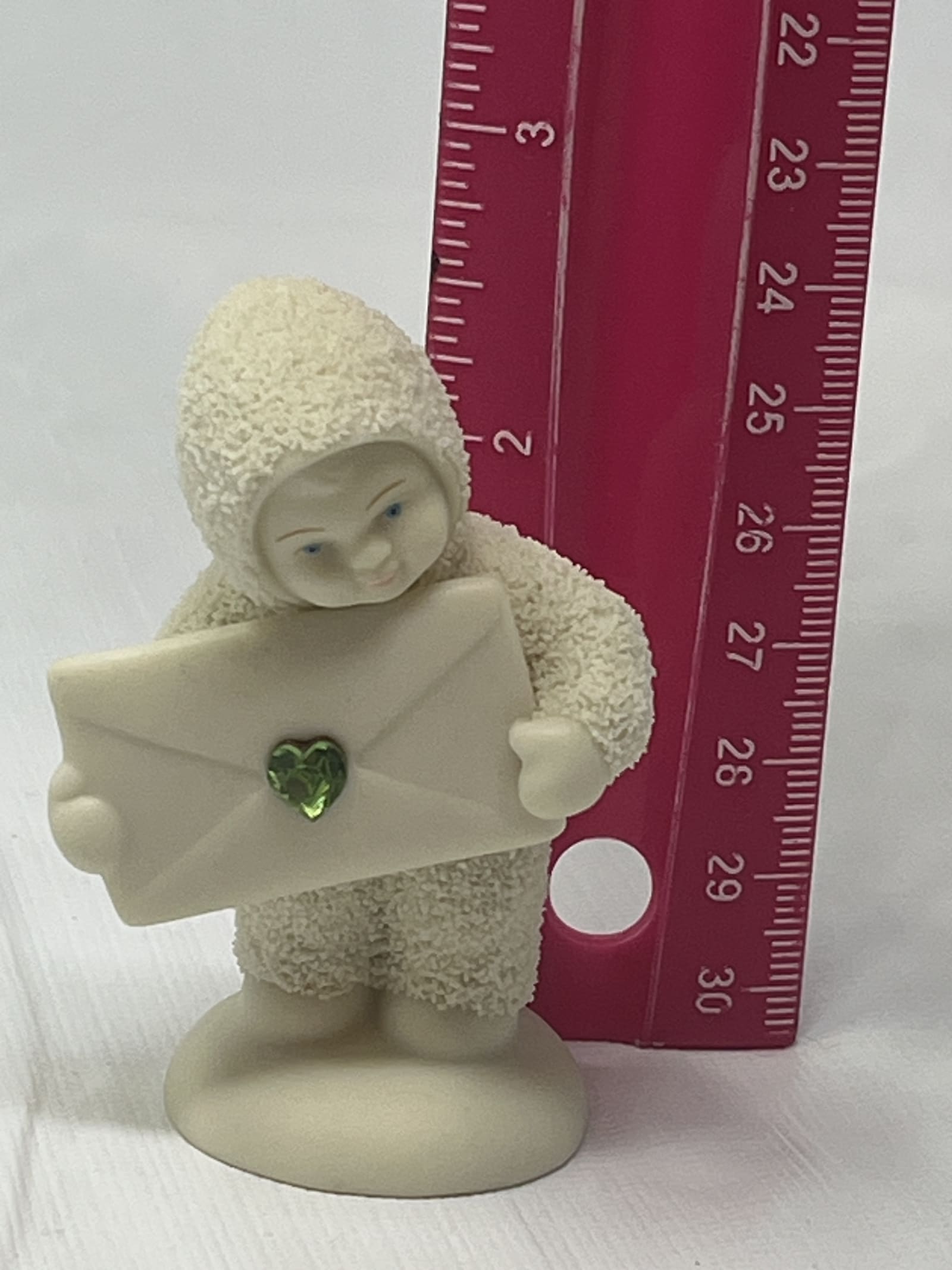Snowbabies Figurine – Child with Envelope & Green Heart Jewel