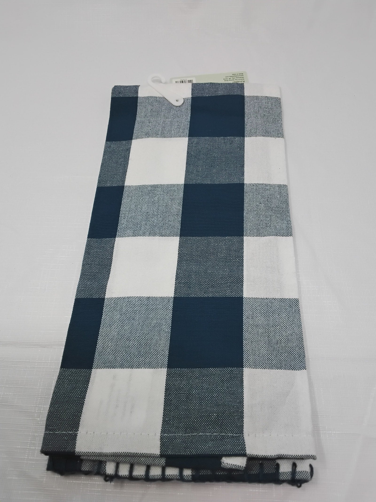 The Spring Shop Buffalo Check Kitchen Towel Navy Blue & White Gingham 16x26 New