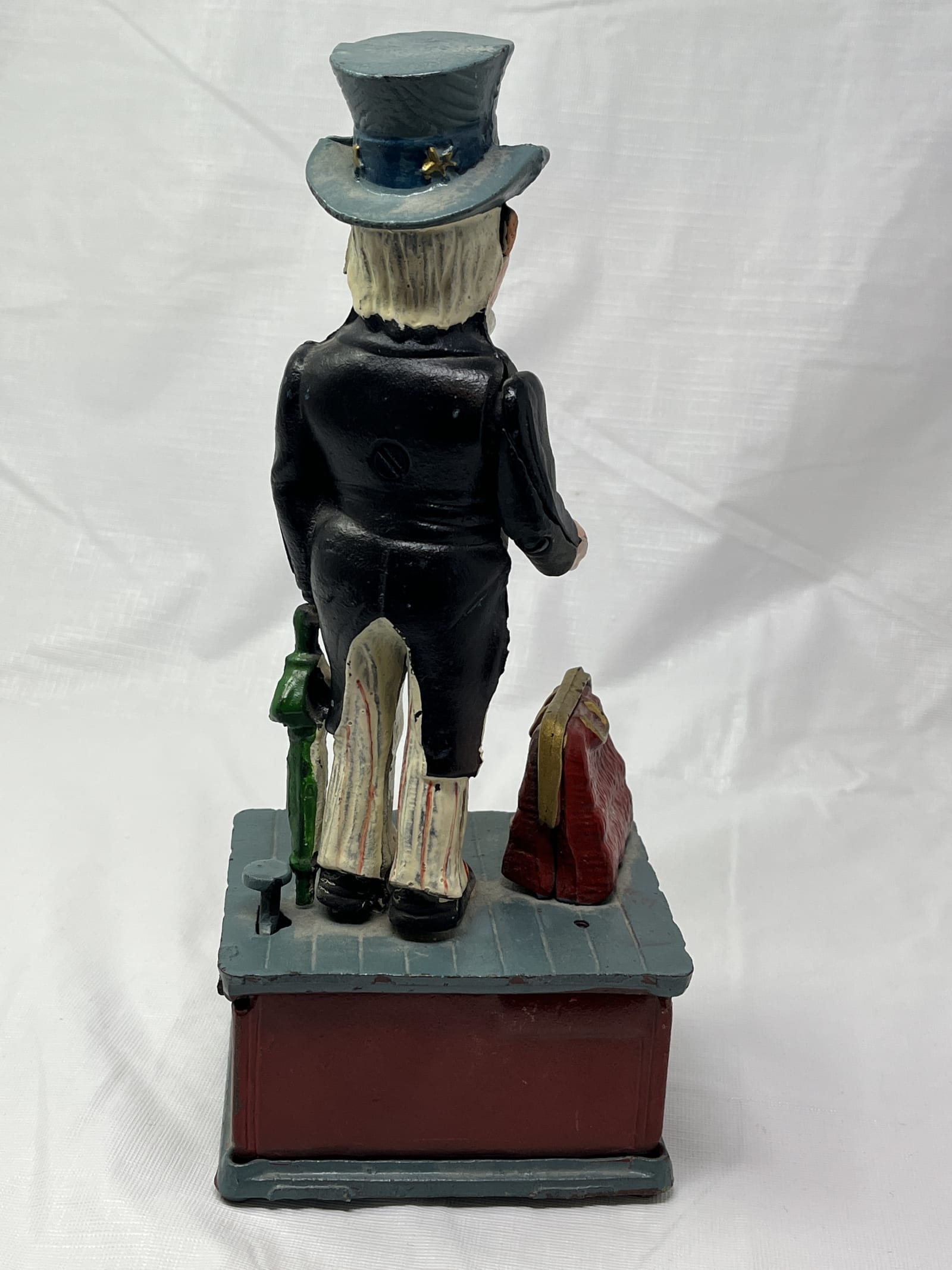 Uncle Sam Cast Iron Mechanical Bank Taiwan Vintage Repro Coin Bank