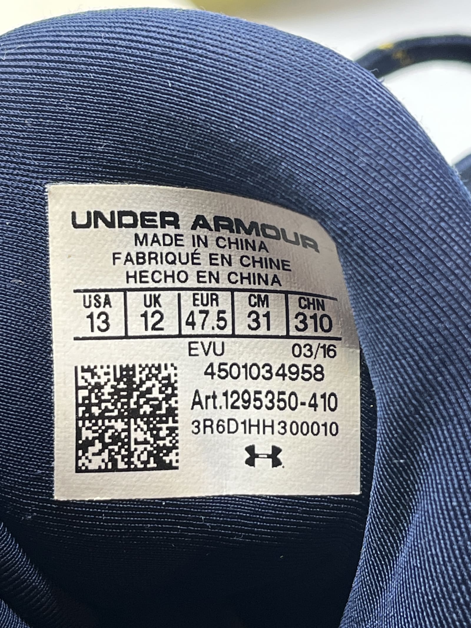 Under Armour sneakers in blue and white with breathable mesh uppers and cushioned soles for training or casual wear.