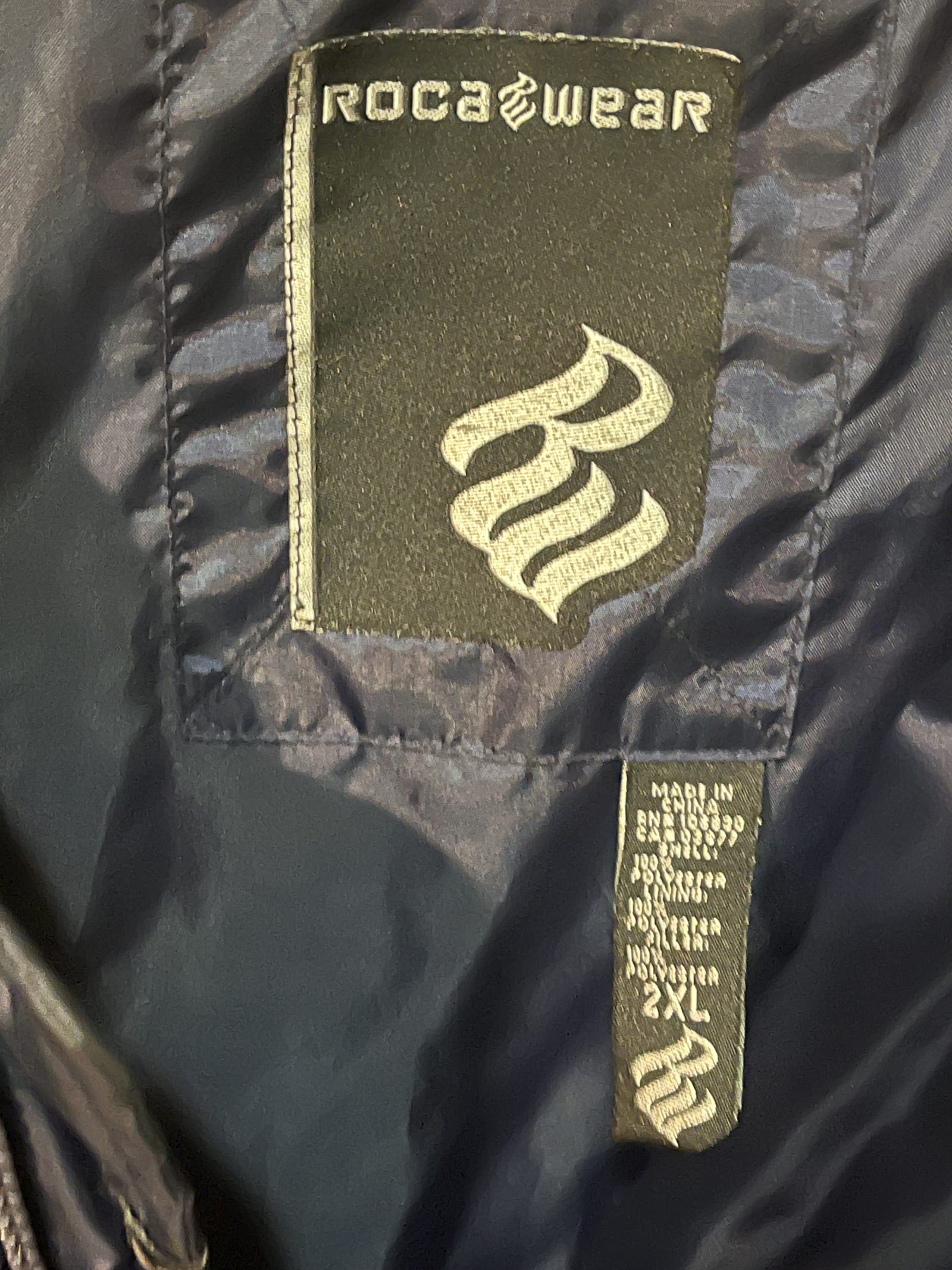 Vintage Rocawear Quilted Bomber Jacket 2XL Navy Blue Hip Hop Y2K