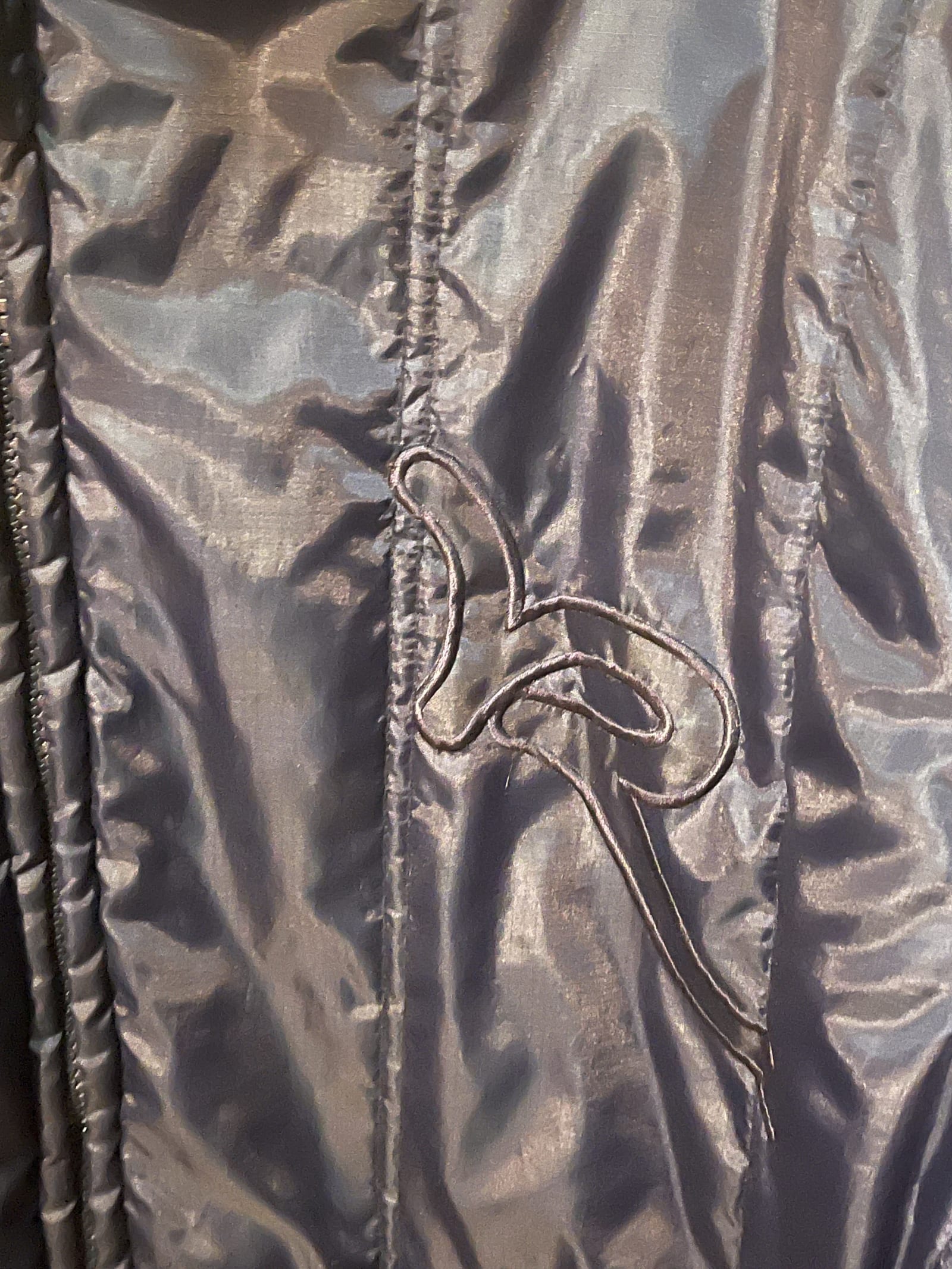 This is a vintage Rocawear quilted bomber jacket in navy blue, tagged 2XL, with classic hip hop and Y2K streetwear styling. It features a quilted body, bomber silhouette, and bold early-2000s Rocawear design.