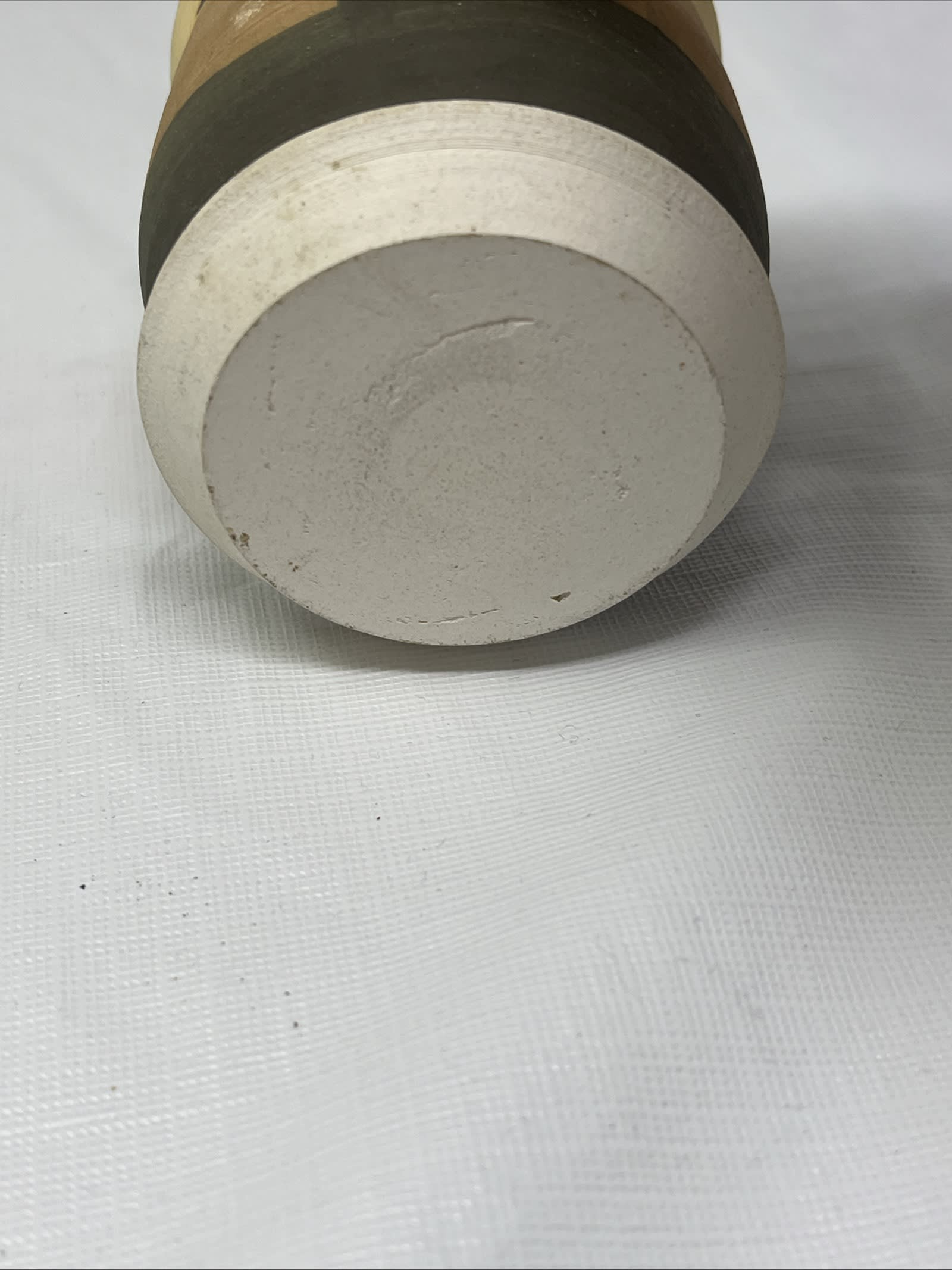This is a vintage Southwestern-style ceramic planter vase featuring a hand-painted desert scene. Perfect for small plants, succulents, or as a decorative accent, it adds a rustic, colorful touch to any room. The vase measures approximately 3.25" tall × 3" across and is in excellent vintage condition with no chips or cracks.
