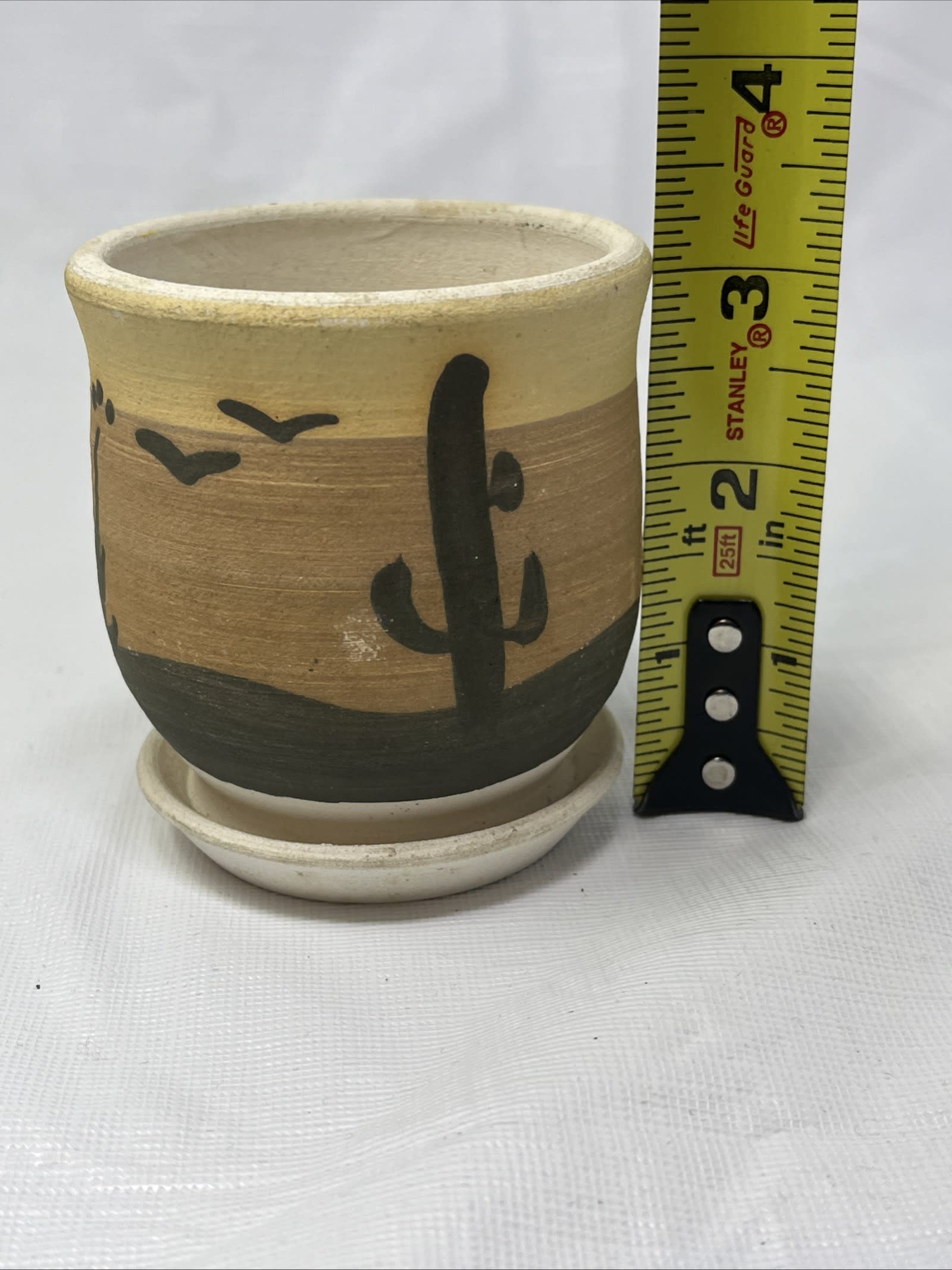 Vintage Southwestern Planter Vase Hand-Painted Desert Scene 3.25" Tall