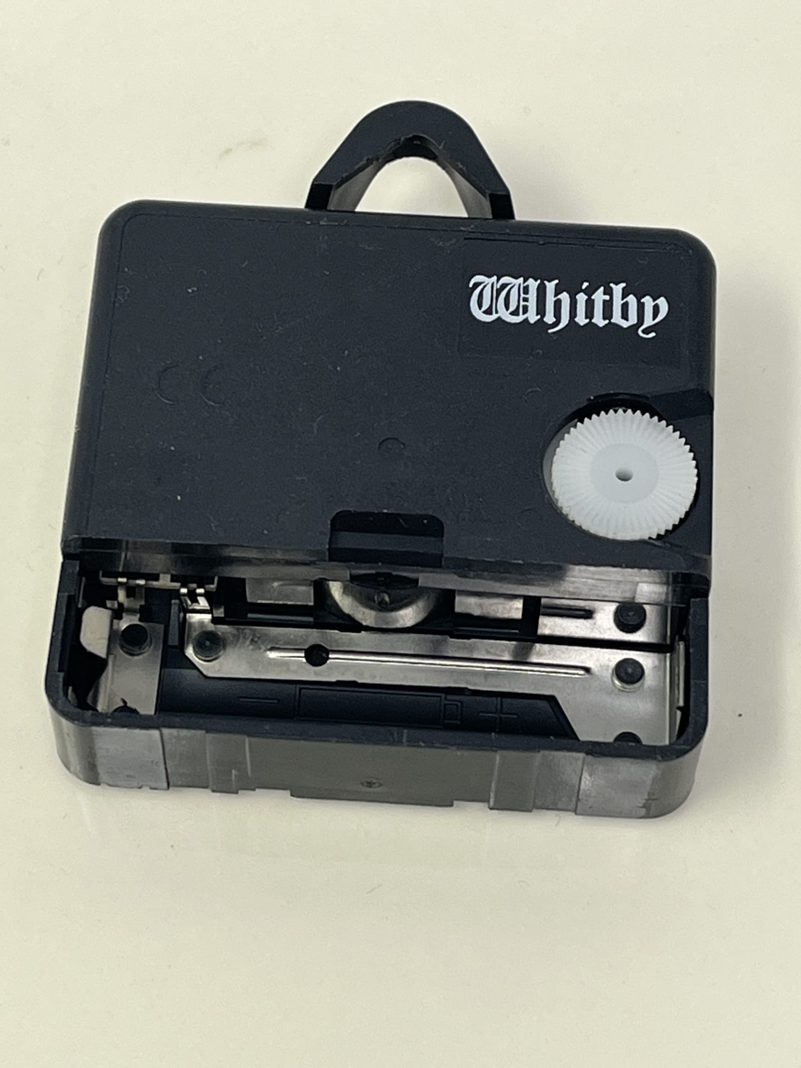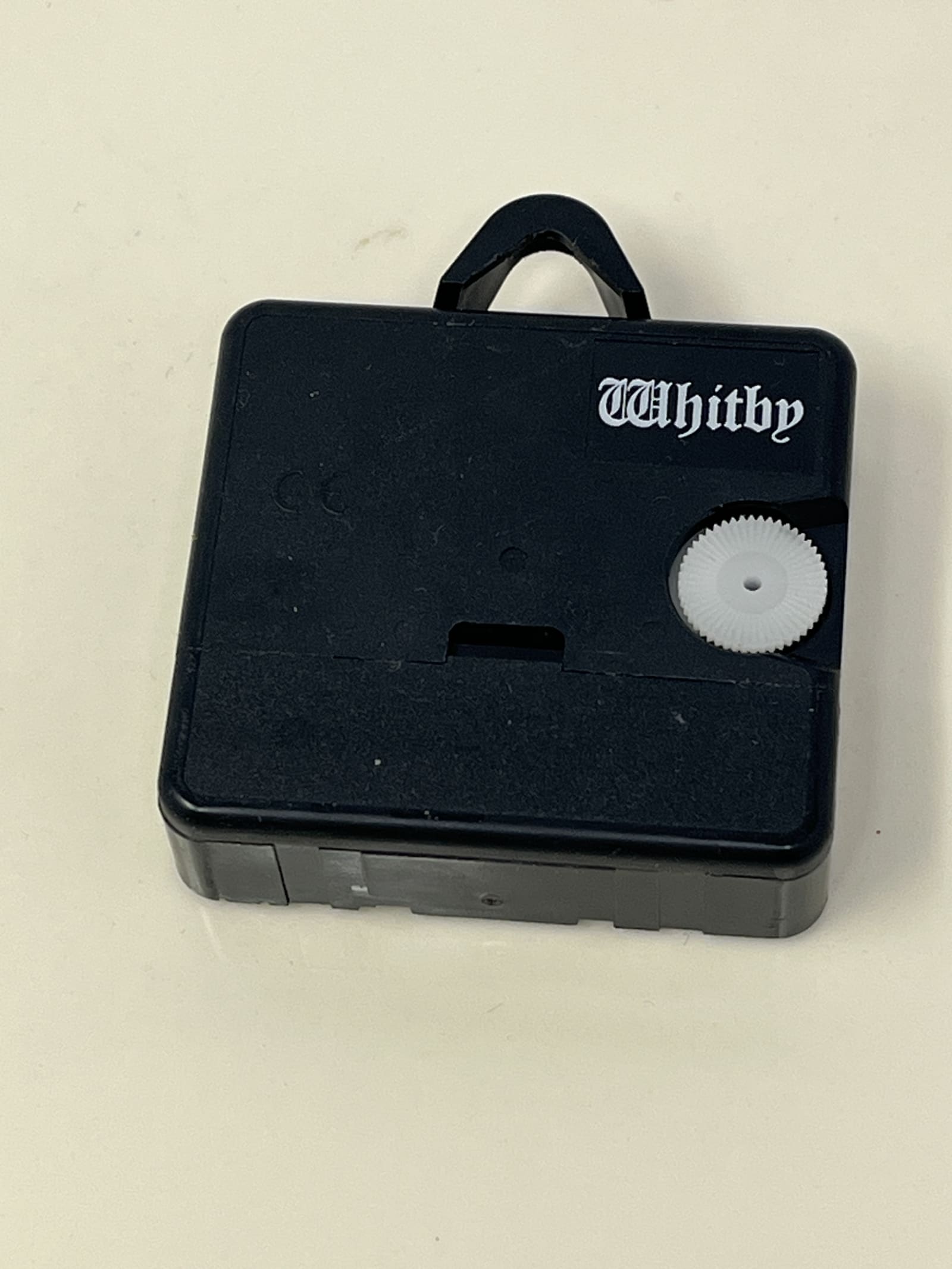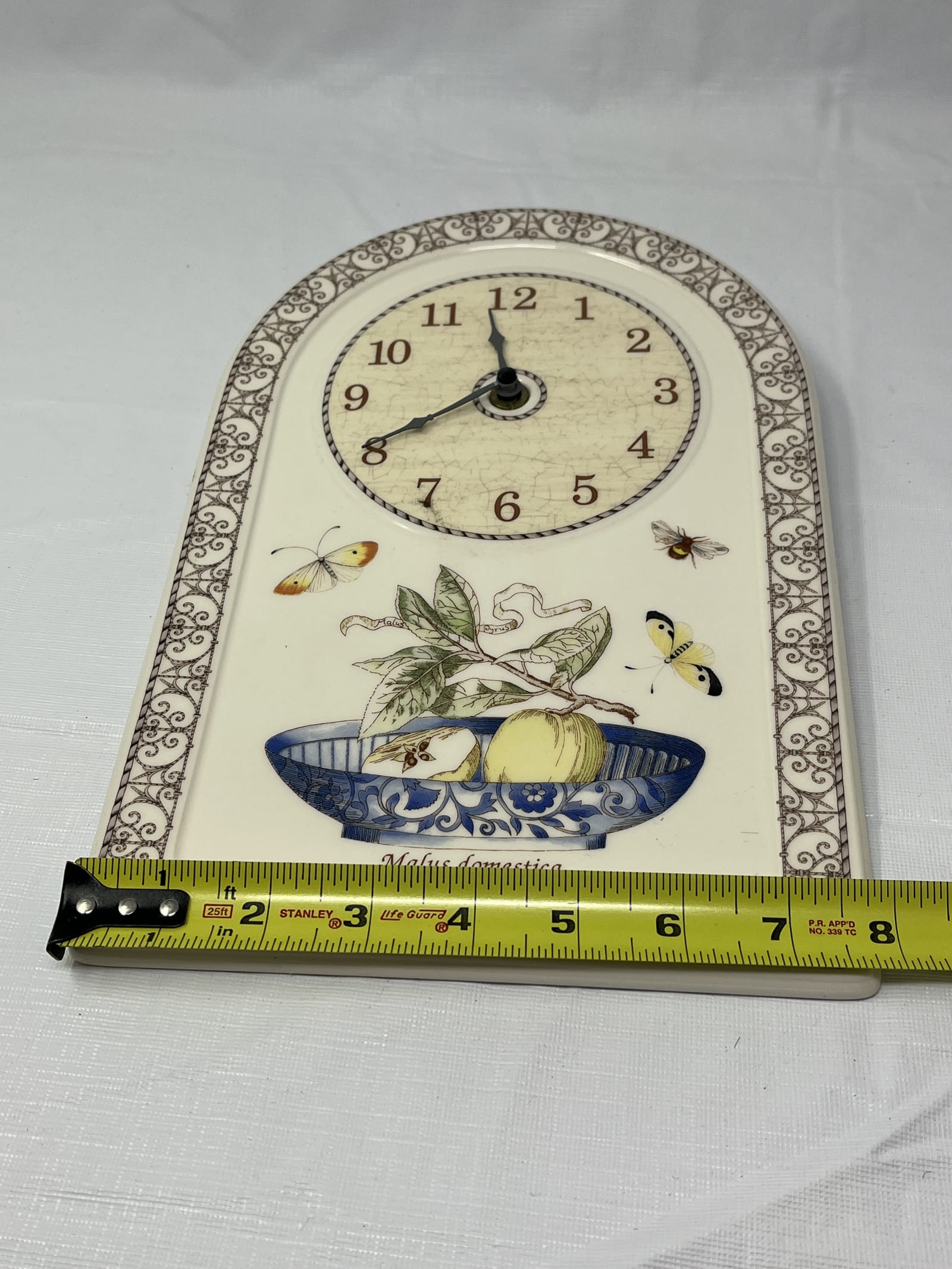 - Condition: Excellent — no chips, cracks, or breaks; light sticker residue on the back from a previous label. The clock ticks and hands move when tested, but it was not time-tested for accuracy.
