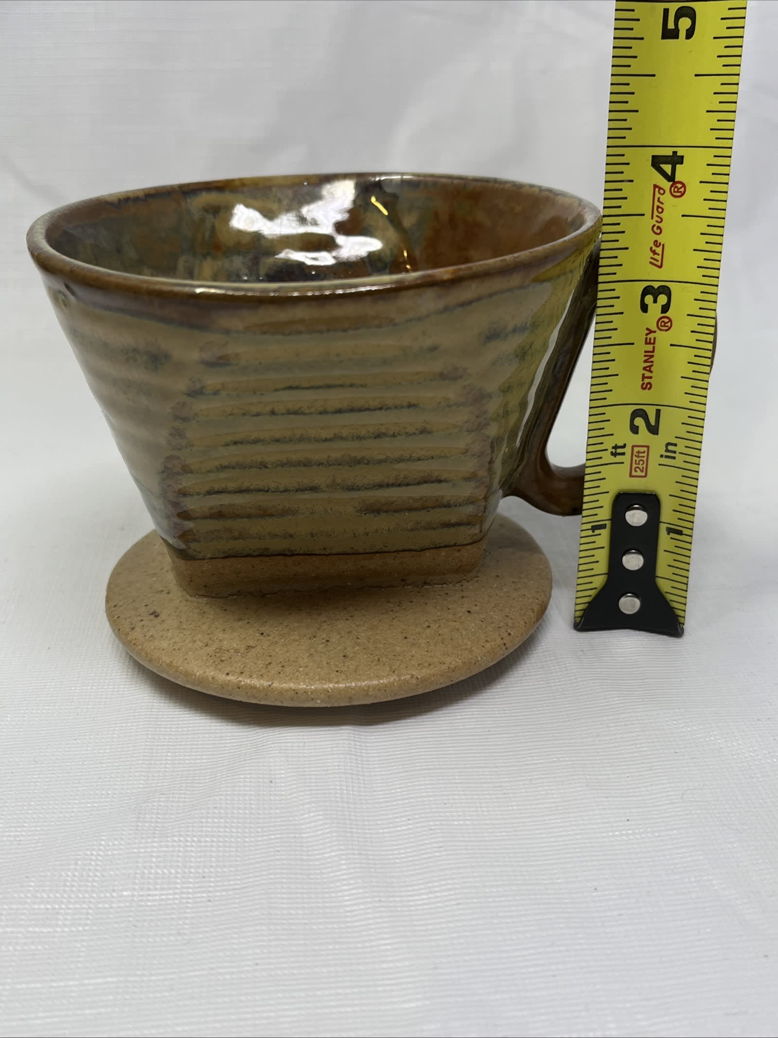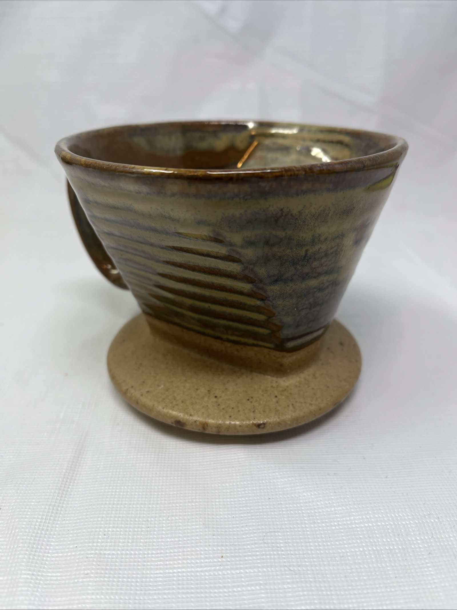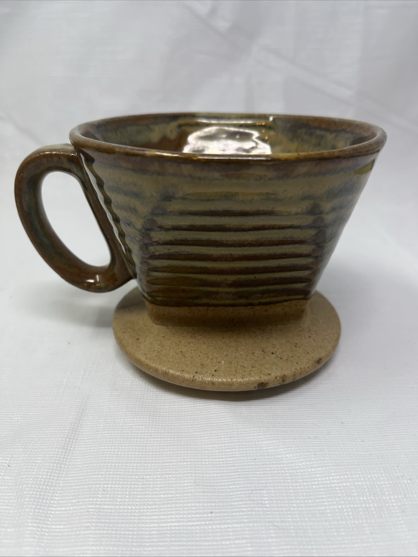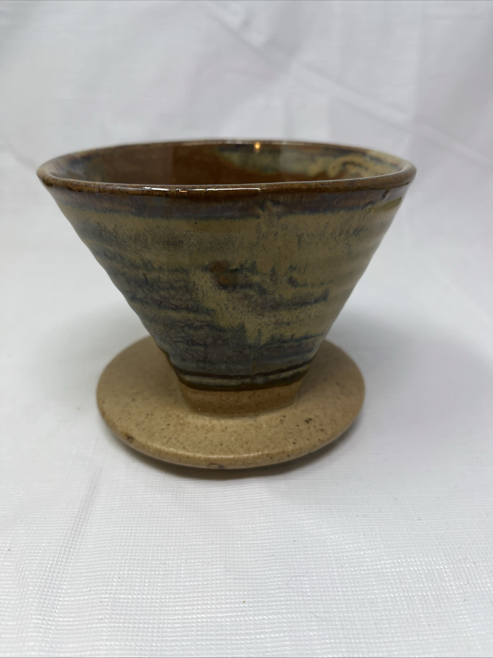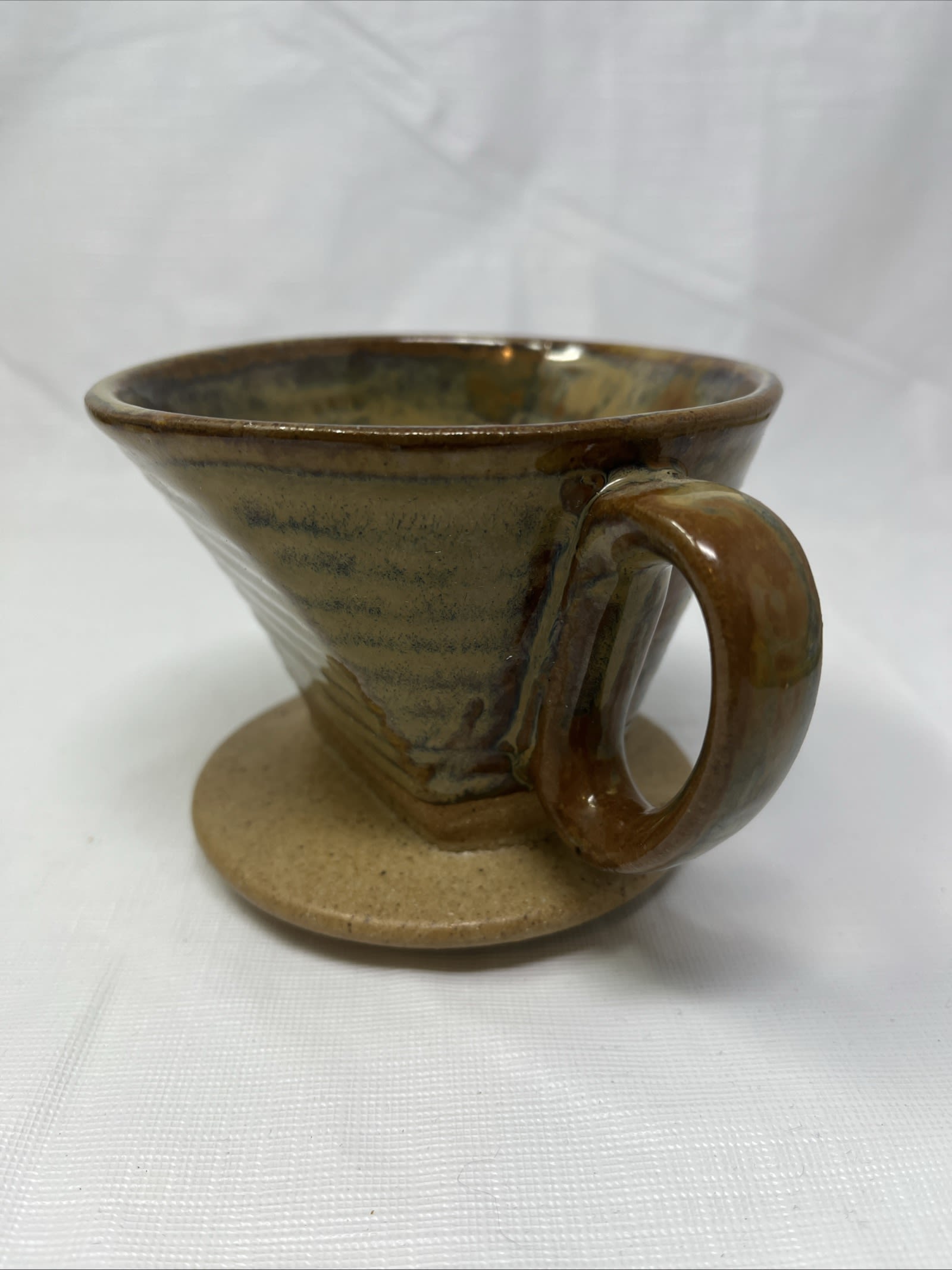 This is a stylish World Market ceramic pour-over coffee dripper in a warm stone/brown glaze — perfect for your morning brew ritual or as a gift for the coffee lover. It’s the dripper only (fits standard cone filters) and is in excellent condition with no chips, cracks or glaze defects.